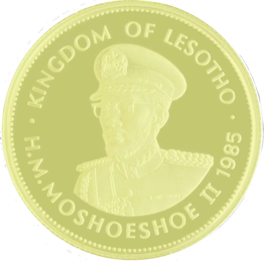 Золотая монета Лесото, посвященная 25-летию коронации короля Мошвешве II.