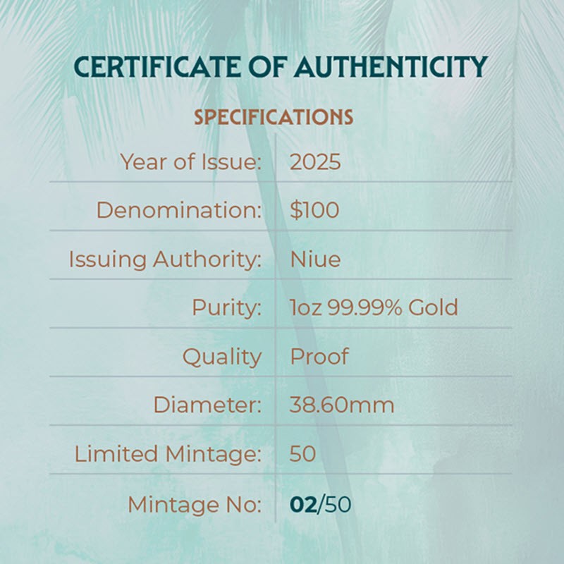 Золотая монета Ниуэ "Фламинго" 2025 г.в. (пруф), 31.1 г чистого золота (проба 9999)
