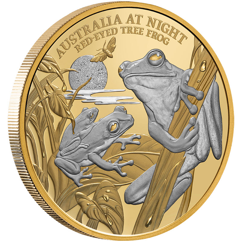 Золотая монета Ниуэ "Ночная Австралия. Красноглазая древесная лягушка" 2024 г.в. (пруф), 31.1 г чистого золота (проба 9999)
