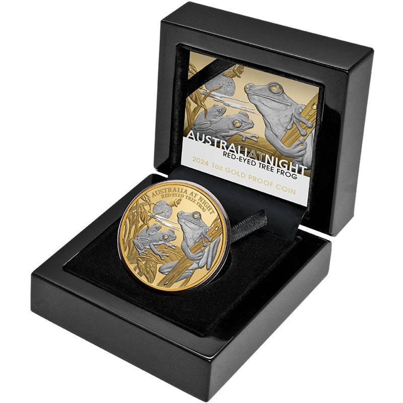 Одиннадцатая золотая монета из серии «Ночная Австралия». Дизайн дополнен селективным платиновым покрытием. У нее качество пруф. Поставляется в оригинальном футляре с сертификатом подлинности. Тираж: 150 штук.