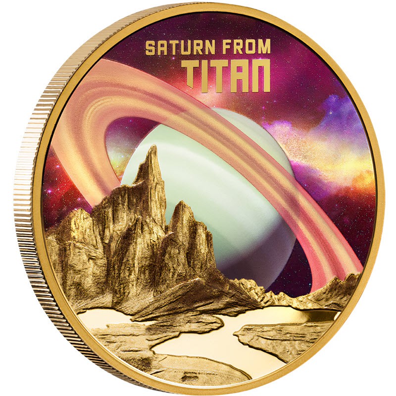Золотая монета Ниуэ "Сатурн с Титана" 2025 г.в. (пруф), 31.1 г чистого золота (проба 9999)