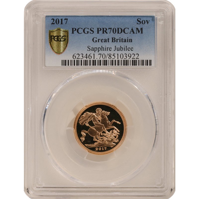В ознаменование 70-й годовщины свадьбы Её Величества Королевы выпущены монеты из коллекции «Соверен» 2017 года. У нее качество пруф. Тираж: 750 штук.