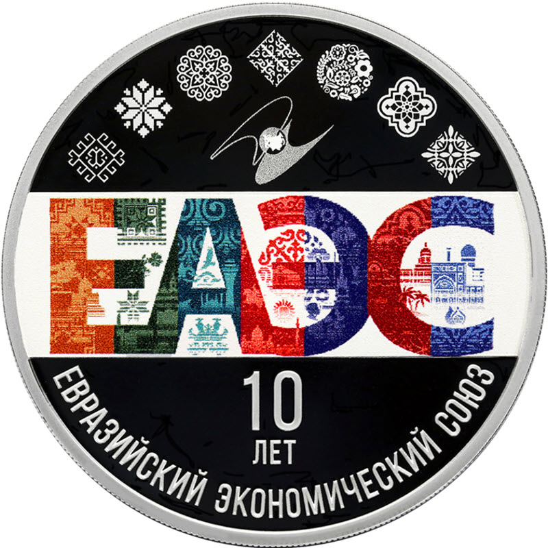 Российская памятная серебряная монета 2024 г. Банка России посвящена 10-летию ЕАЭС. Тираж: 3000 штук.