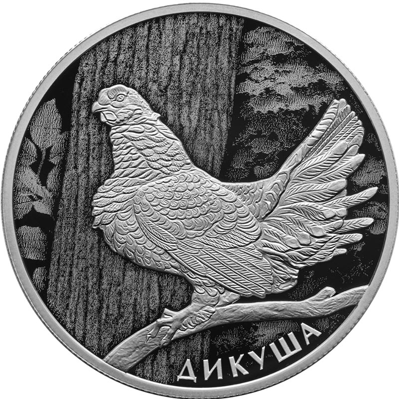 На реверсе изображена дикуша, сидящая на ветке. Внизу надпись: ДИКУША.