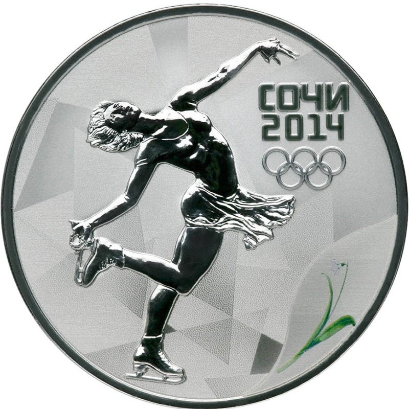 Серебряная монета России "Сочи. Фигурное катание" 2014 г.в., 31.1 г чистого серебра (проба 925)