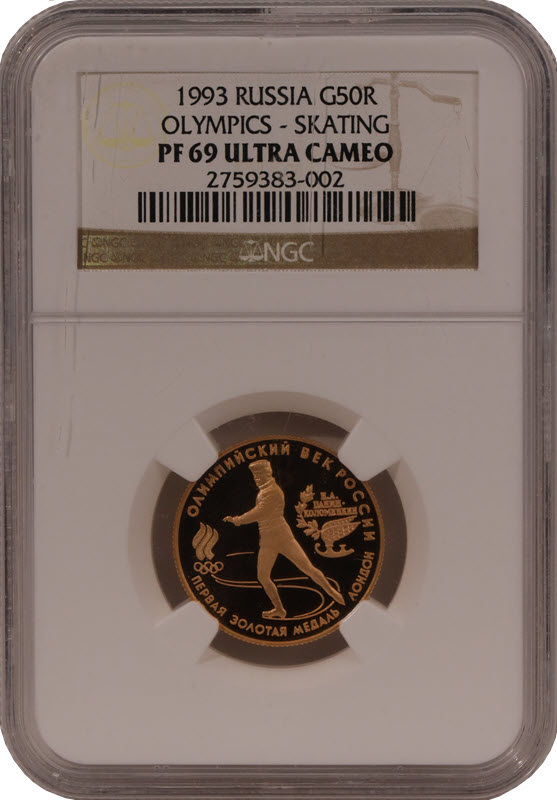 Золотая монета России "Олимпийский век России. Первая золотая медаль" 1993 г.в. в слабе NGC PF69, 7.78 г чистого золота (проба 900)