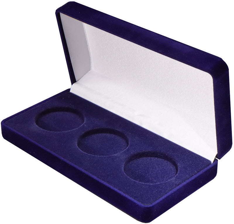 Футляр Бархат синий на 3 монеты Ø 44 (172х88х40 мм)
