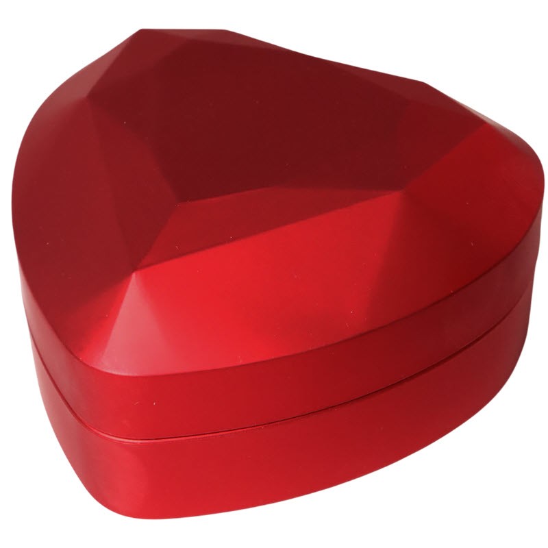 Подарочный футляр для ювелирного украшения. У него красный цвет в форме сердца. Наружный размер: 7,9 Х 8,5 Х 4,5 см.